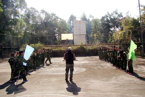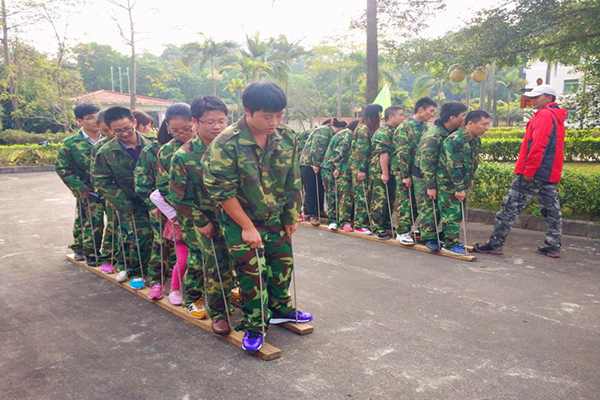 這個項目是模擬戰場,三人一組,分別扮演:司令(不能說話、面朝戰場)、參謀長(背對戰場)、士兵(蒙上眼罩,不能說話)。